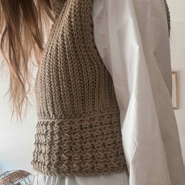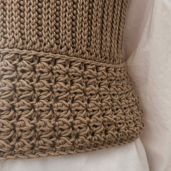 Vas a poder tejer este proyecto en cualquier material y en el tamaño que quieras. No incluye tabla de talles.